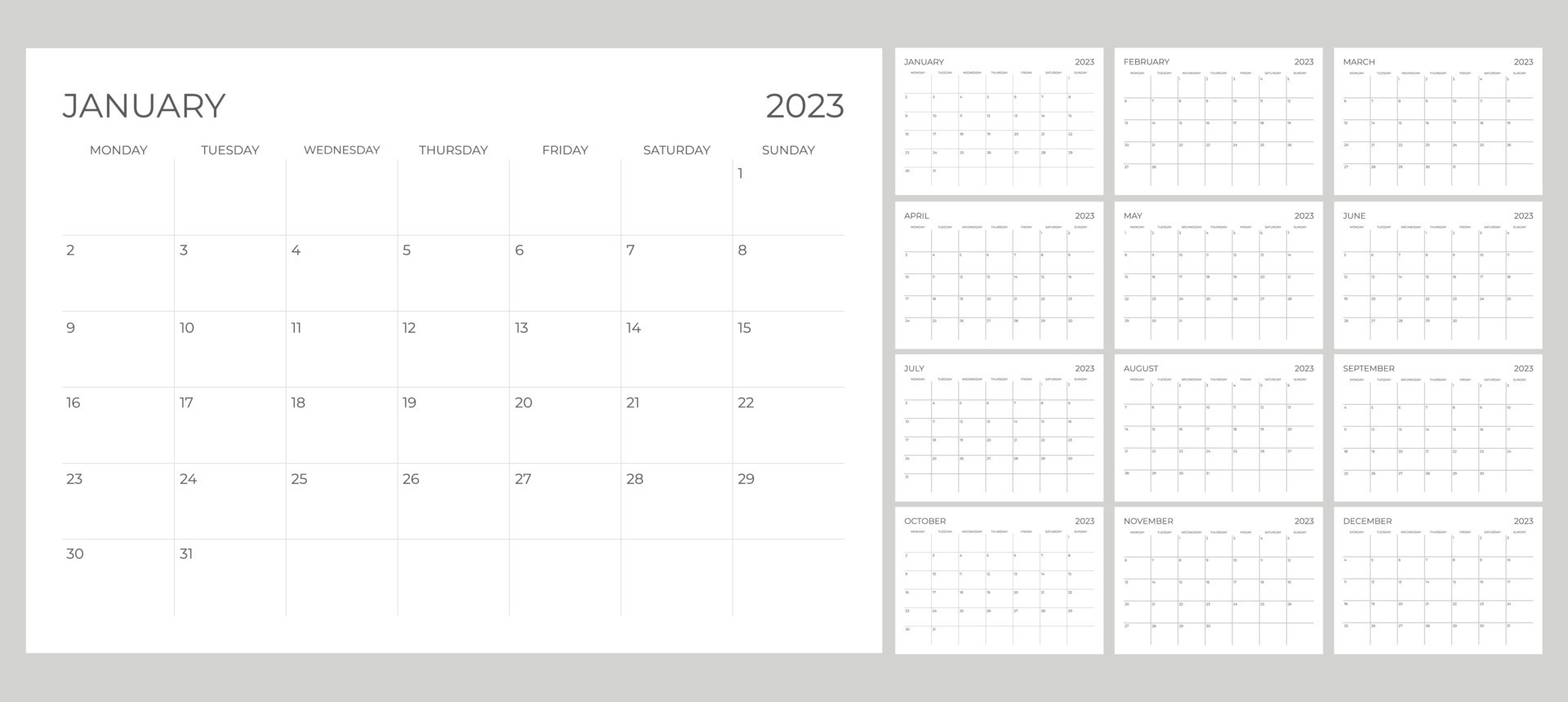 2023 Calendar Printable start from monday 14066191 Vector Art at